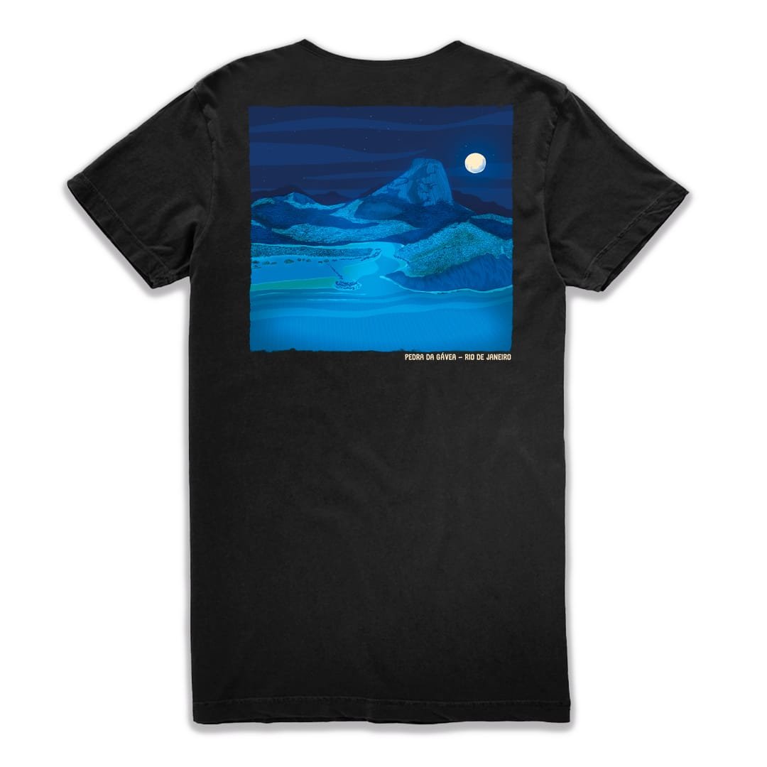 Sinta a magia noturna do Rio de Janeiro. Nossa camiseta “Pedra da Gávea Noturna” traz a imponente montanha sob o esplendor da lua e um céu estrelado, numa arte que captura paz e mistério. Tons de azul profundo e o brilho suave da lua criam uma atmosfera única. Vista esta obra de arte e carregue consigo a serena energia da noite carioca.
