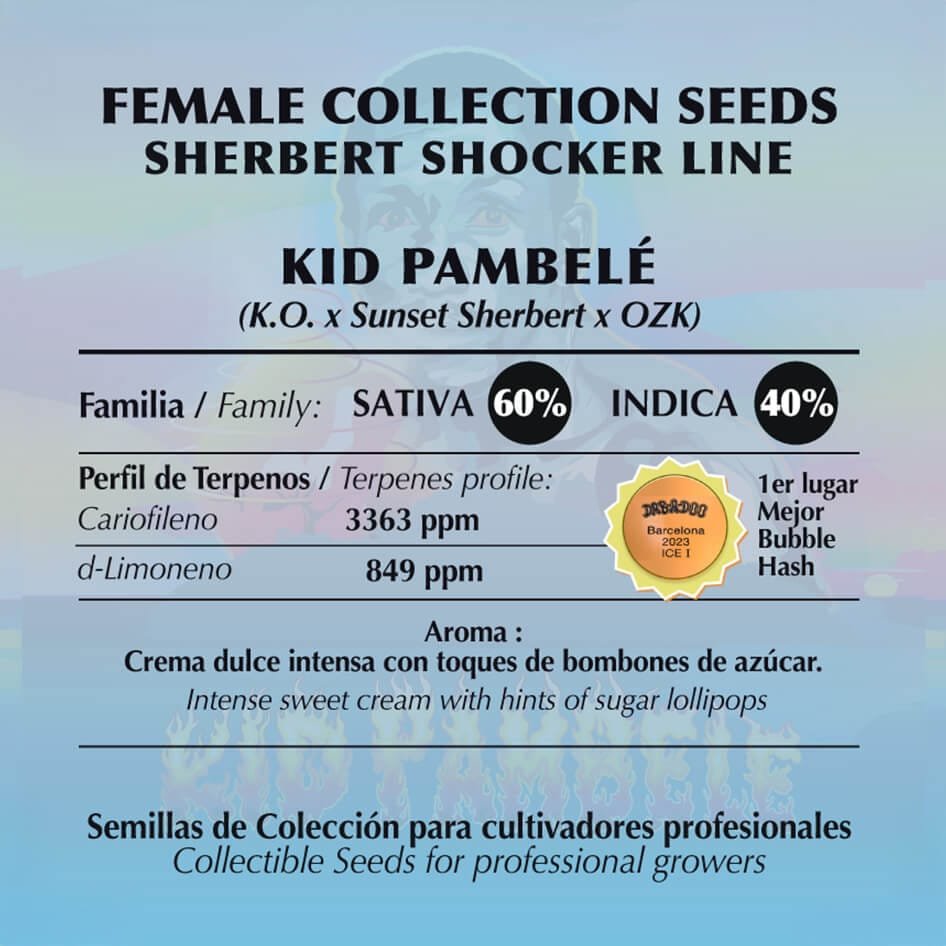 Em homenagem a um dos mais importantes boxeadores colombianos, Antonio Cervantes, mais conhecido como Pambelé, a Kid Pambelé da Black Tuna Seeds é uma maravilha genética. Fruto da união da poderosa K.O. com a renomada Sherbert Shocker, esta semente feminizada fotoperíodo floresce rapidamente, de 8 a 9 semanas. Perfeita para técnicas como SCROG, sua estrutura robusta facilita o manejo, prometendo colheitas impressionantes de botões com 60% Sativa e 40% Indica.