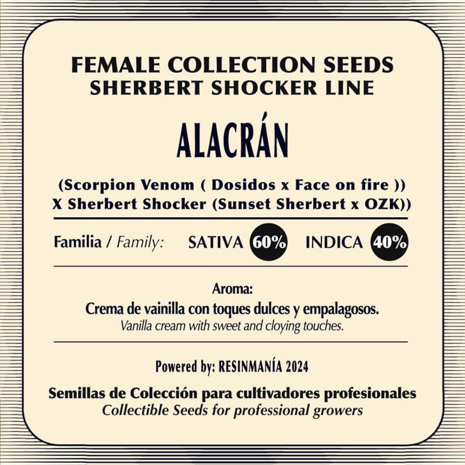 Prepare-se para uma experiência inesquecível com Alacrán da Black Tuna Seeds! Esta genética fotoperíodo combina o vibrante com o cremoso, resultando em um perfil aromático único, com notas doces, cítricas e um toque picante que adiciona profundidade. Seus efeitos potentes e equilibrados a tornam a escolha ideal para colecionadores que buscam algo especial e memorável, culminando em uma floração rápida e um charme visual inconfundível.
