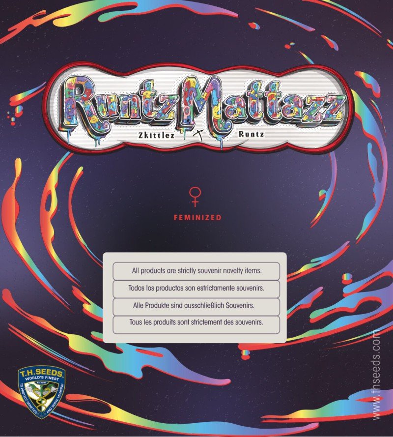 Semente Runtz Mattazz T.H.Seeds: feminizada fotoperíodo. Aroma de gás açucarado, cítricos, pinho e ervas.